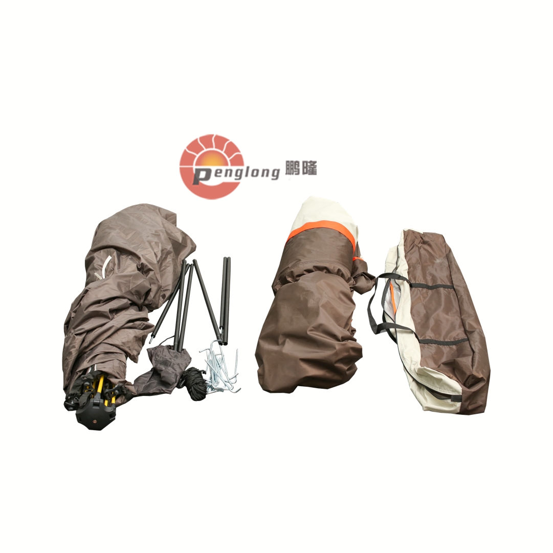 撑杆材质:自动铝合金杆架 内帐材料:150D牛津布 外帐材质:150D涂银牛津布 帐底材质:牛津布 外帐防水指数:2000mm(含)-3000mm(含) 帐底防水指数:PU2000mm 包含配件: 地钉*14、防风绳*6、收纳袋*1、防水外账*1、天幕杆*2 尺寸:240*280*160cm 常规颜色:咖色、绿色 接受定制颜色和尺寸