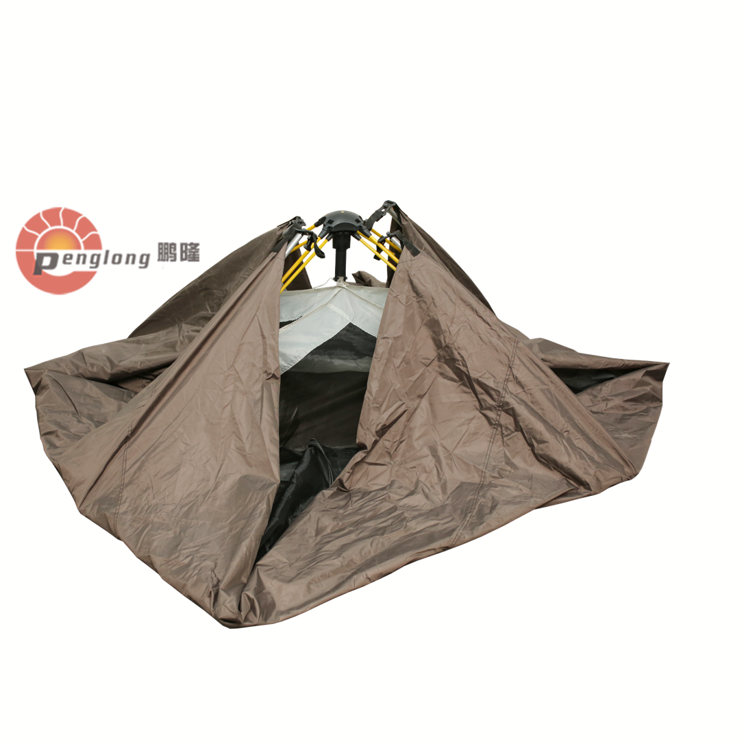 撑杆材质:自动铝合金杆架 内帐材料:150D牛津布 外帐材质:150D涂银牛津布 帐底材质:牛津布 外帐防水指数:2000mm(含)-3000mm(含) 帐底防水指数:PU2000mm 包含配件: 地钉*14、防风绳*6、收纳袋*1、防水外账*1、天幕杆*2 尺寸:240*280*160cm 常规颜色:咖色、绿色 接受定制颜色和尺寸